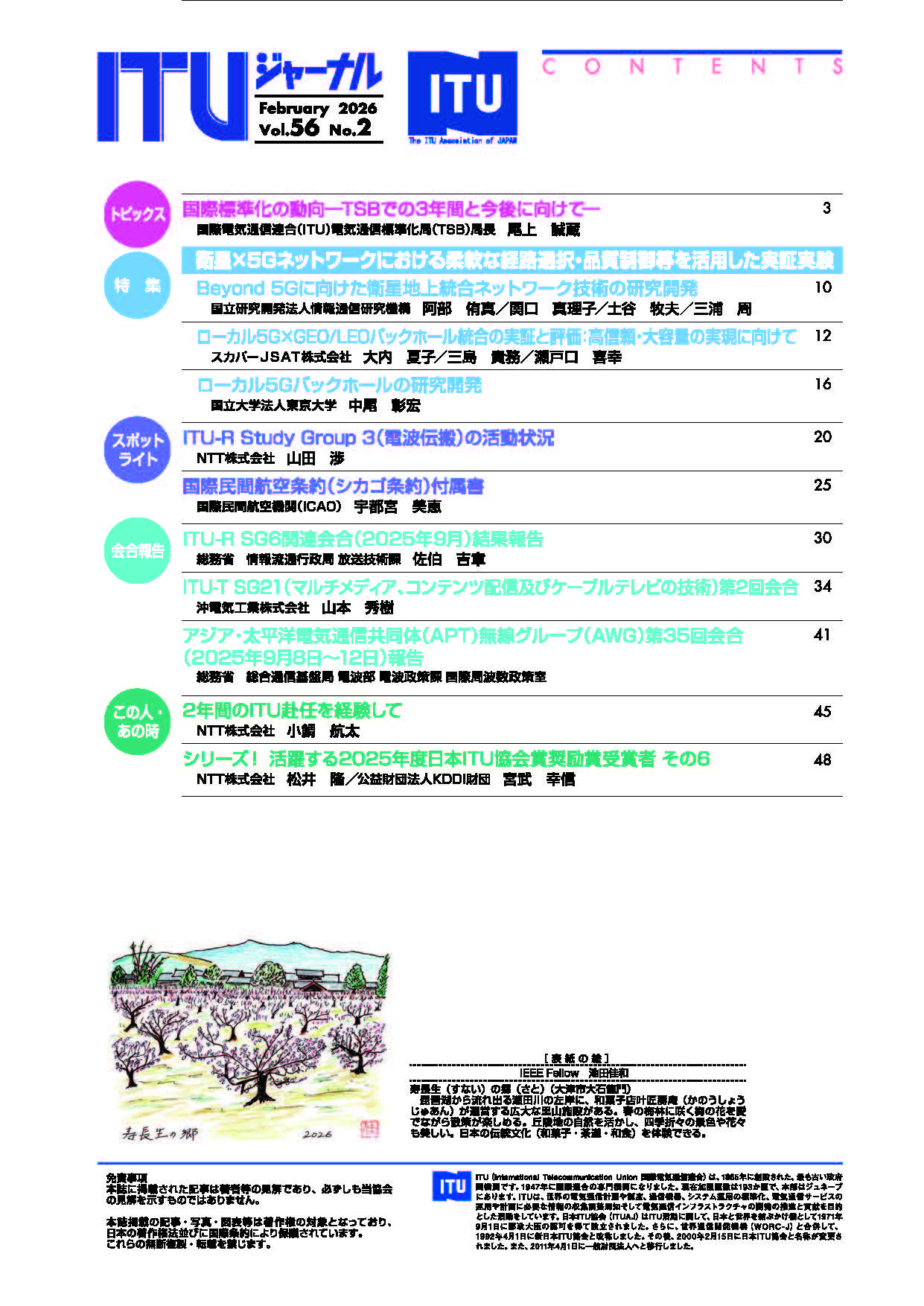 今月は2025年12月に行われたITU電気通信標準化局長 尾上誠蔵氏の講演の模様と、衛星と5Gネットワークを利用した実証実験の特集をお届けします。