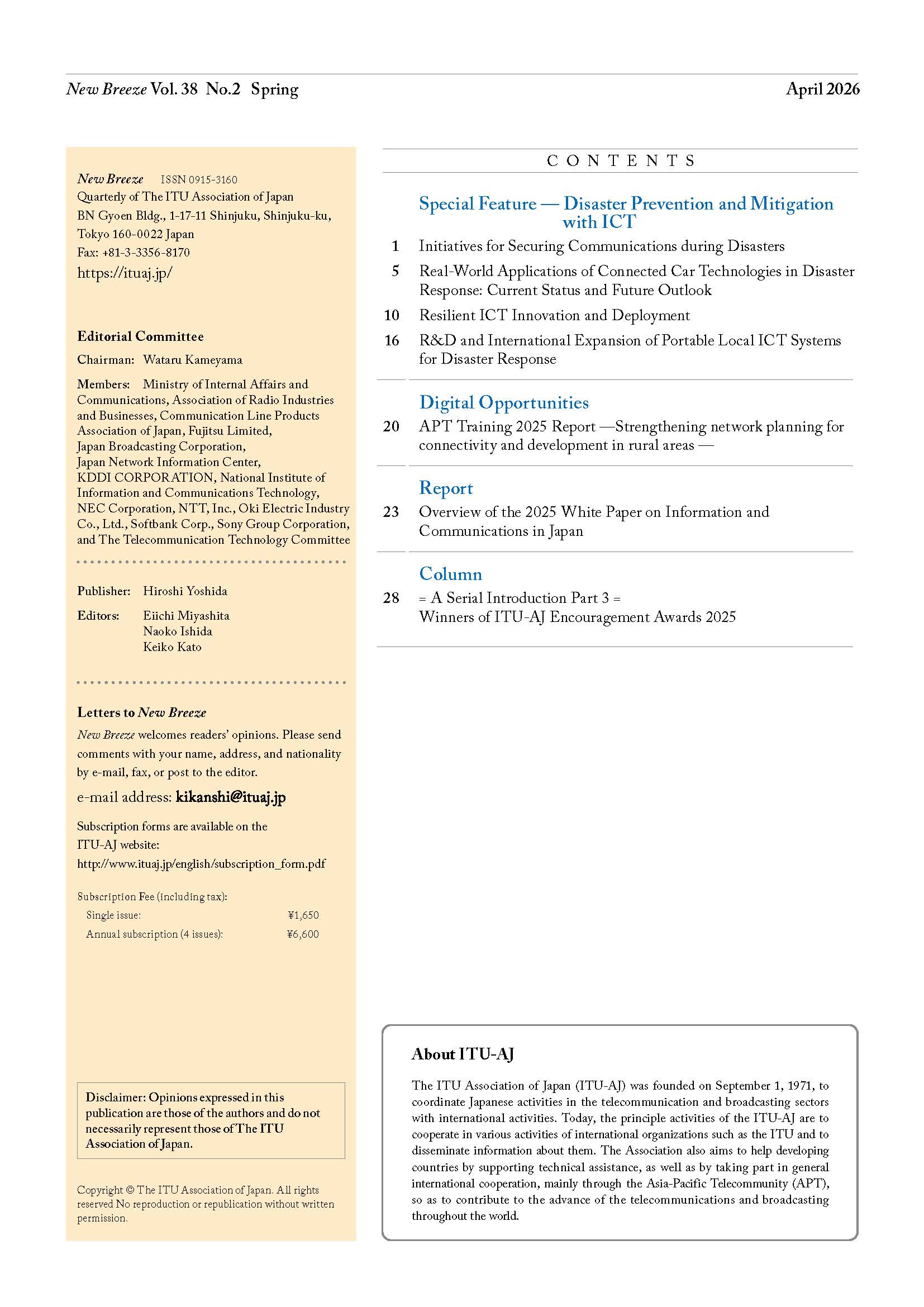通算150号を迎えたNew Breeze 2026春号では「防災・減災とICT」を特集いたしました。国や民間での取り組みを紹介します。